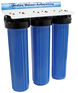 Unsere HSW100 Hauswasser-Anlage ist eine 3-Stufen Anlagen, die in Deinem Leitungssystem die größten Verunreinigungen heausfiltert. Die Filter müssen spätestens alle 12 Monate erneuert werden!